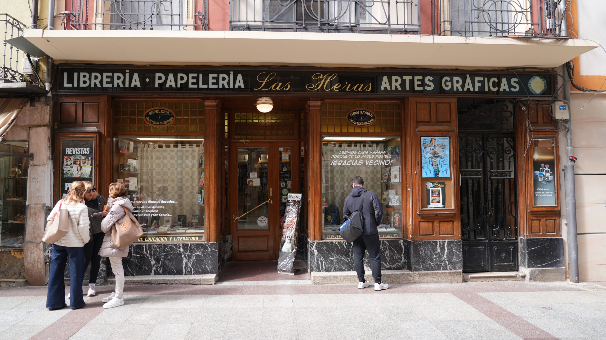 Considerado como el faro cultural de la ciudad de Soria desde 1860. La Librería Las Heras, fundada en 1860 y situada en la céntrica calle El Collado de Soria, es mucho más que un establecimiento comercial: es una institución cultural con más de 160 años de historia que ha sabido mantenerse fiel a su esencia, integrándose plenamente en la vida social y cultural de la ciudad. Su singularidad radica no sólo en su longevidad y estética tradicional, sino también en el vínculo emocional que mantiene con varias generaciones de sorianos, así como en su estrecha relación con figuras clave de la literatura española como Antonio Machado y Gerardo Diego. Desde su actual gestión por César Millán, la librería ha intensificado su labor como dinamizadora cultural: organiza presentaciones de libros, colabora con medios, promueve el Club de Lectura y La Saturiada, y participa en eventos literarios como Expoesía y el Festival de las Ánimas. Todo ello convierte a Librería Las Heras en un verdadero ejemplo vivo de comercio emblemático: por su identidad única, su integración urbana, su aportación constante al tejido cultural y su compromiso con la preservación del patrimonio y la promoción de la lectura de la ciudad de Soria.